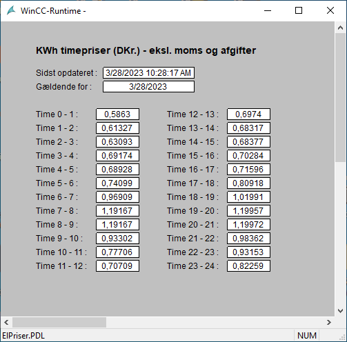 “Elpriser” er en specialudviklet applikation, der dagligt giver hurtig og nem adgang til Kwh/Mwh timepriser i Danmark, og lagrer priserne som timeværdier i WinCC tags.